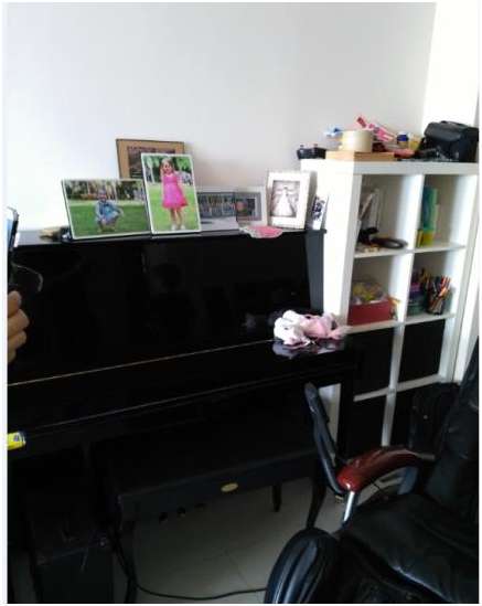 钢琴很久都没有打开过,旁边胡乱的摆着一条椅子和一辆山地车。